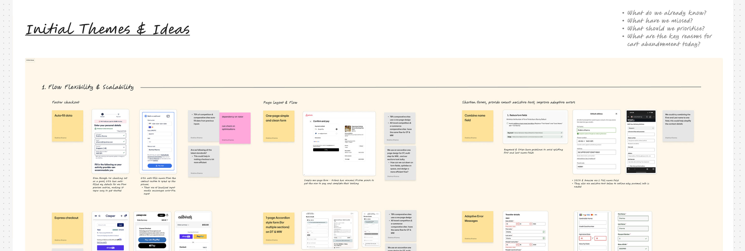 I synthesised audit findings into clear themes in a shared FigJam, enabling pattern recognition and focused cross-functional discussion.